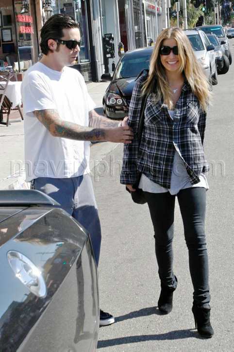 Carmen Electra and her boyfriend fiance, Korn guitarist Rob Patterson, went shopping on Melrose yesterday. I couldn’t remember offhand whether or not they were engaged (thought I remembered a black diamond engagement ring, but I wasn’t sure), so I Wikipedia’d Carmen and found out all kinds of things! Here are some of her romantic conquests that you may have forgotten (or may never have known):