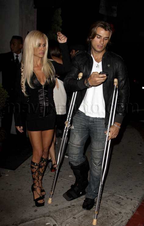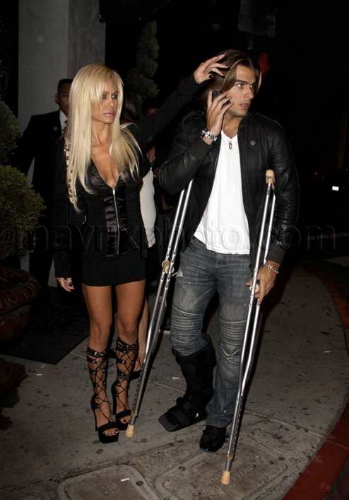 Anyway, I’m making up for it right now by giving you a double dose of awesome: Shauna and her husband, Roman Chavent (who BTW looks like a younger version of her ex-hubby Lorenzo Lamas)! The two were out together last night, and Shauna was looking more elegant than ever. She seems to have traded in her notorious clear heels for those lovely lace-up kicks, which is an interesting change. Way to keep us guessing, Shauna! Plus, they go really well with that spandex tube top miniskirt and jacket. I bet they’re made by a designer I’m too poor to have even heard of.