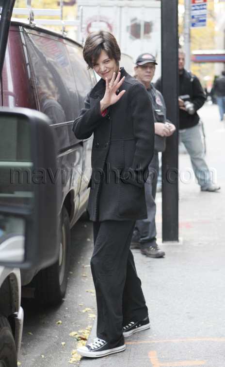 Katie Holmes was in NYC yesterday looking like the Crypt Keeper. I suppose just about anyone would be worn out given what’s on her plate at the moment. She’s the mother to a toddler, the star of a Broadway show and is married to Tom friggin’ Cruise. That’d be a bit much for anyone, I think.